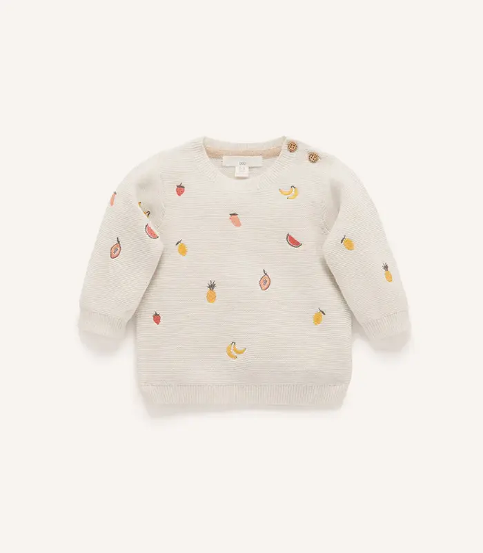 Keep warm and cosy in our Snowy Embroidered Jumper. Featuring an all over winter inspired embroidery with ribbed trims to keep out chills. Made from our organic cotton wool blend, pair this jumper with track pants or leggings for a sweet outfit.
